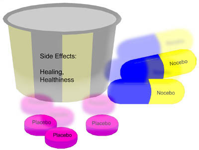Neither seriously considers the symptoms of healing or healthiness. What are the symptoms of healing? How does the placebo effect affect the symptoms of healing? What are the symptoms of healthiness? How does the nocebo effect affect the symptoms of healthiness?